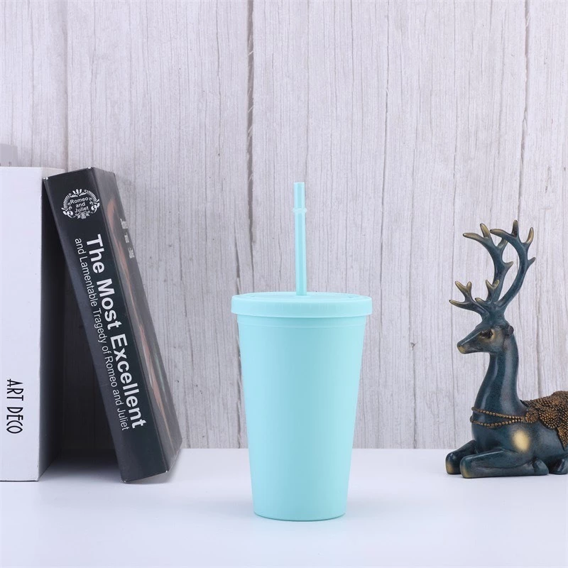 แก้วน้ำพลาสติก 2 ชั้น พร้อมหลอดสีเดียวกัน สีมิ้นท์แมทสวยน่ารัก ขนาด 700 มล.