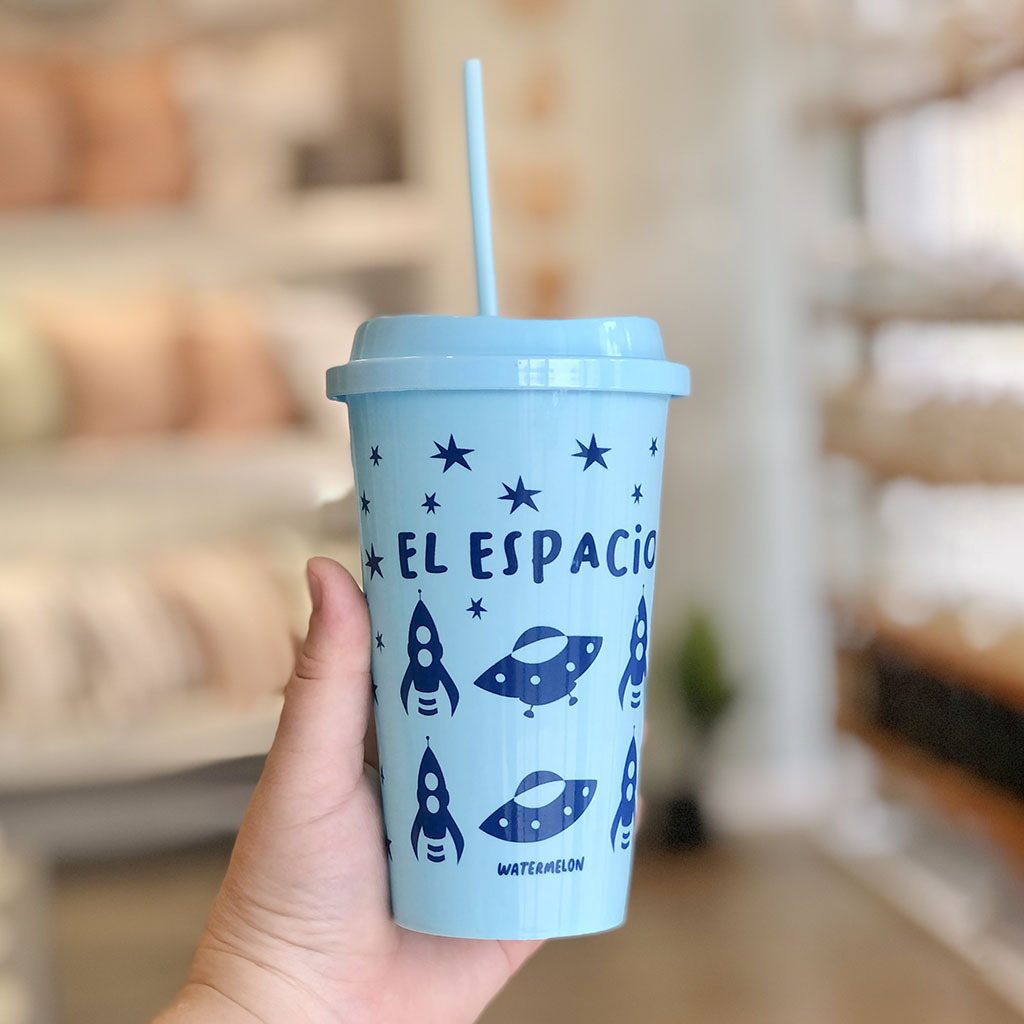 แก้วน้ำสีฟ้า ลายจรวด น่ารัก