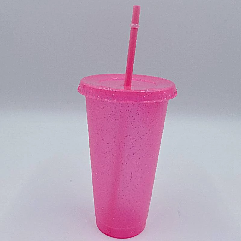 แก้วน้ําพลาสติก สีชมพู ประดับเลื่อม กลิตเตอร์ ใส่สบาย สร้างสรรค์