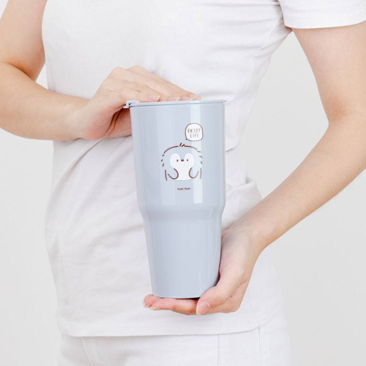 แก้วพลาสติกใส่ร้อนเย็น*ลายน่ารักมาก* สีเทา พร้อมส่งจ้า