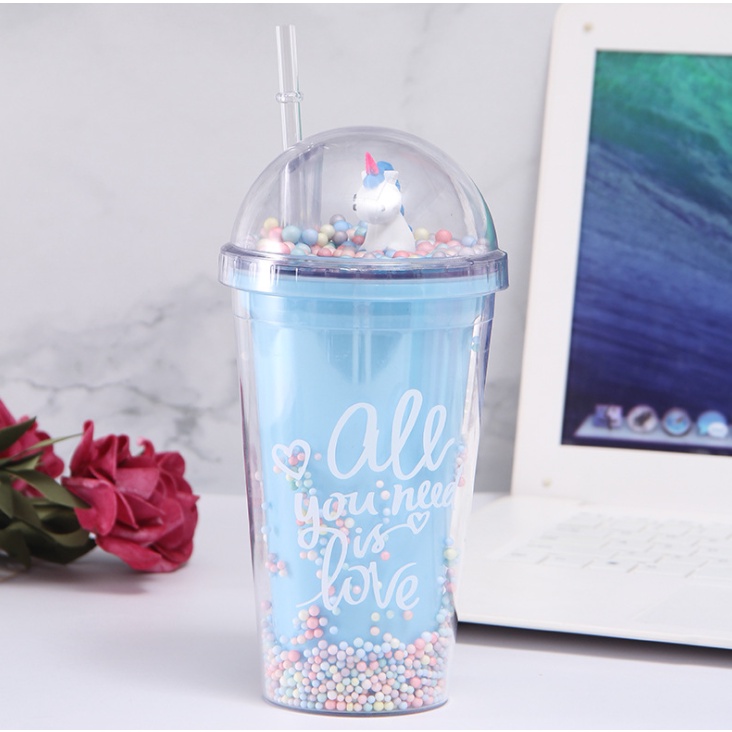 แก้วพลาสติก2ชั้น ทรงคริสตัล 1/ชิ้น สีฟ้า แก้วน้ำฝาโดม แก้วน้ำวิ้งๆ แก้วน้ำฝาเพชร แก้วน้ำแบบใส